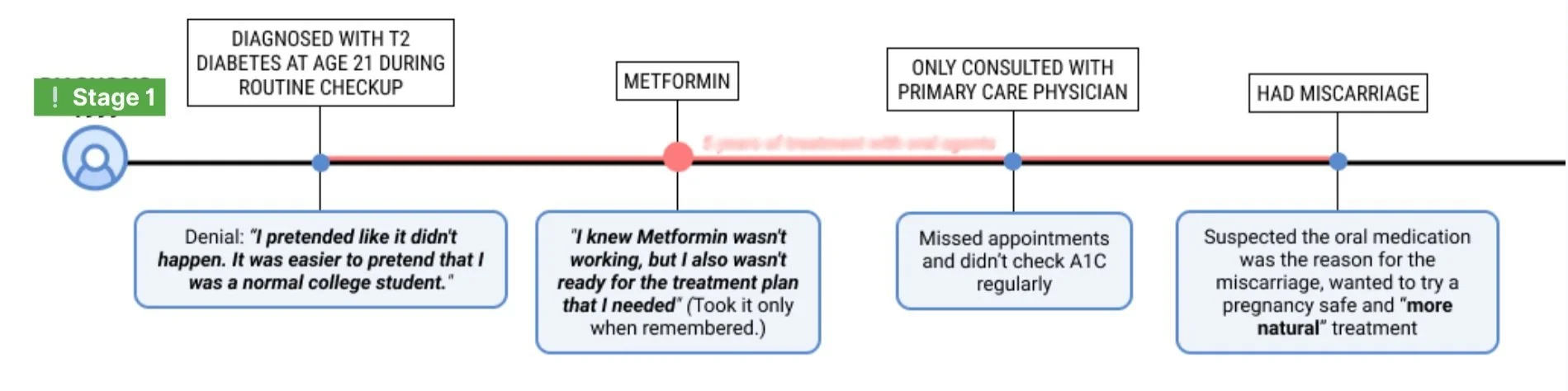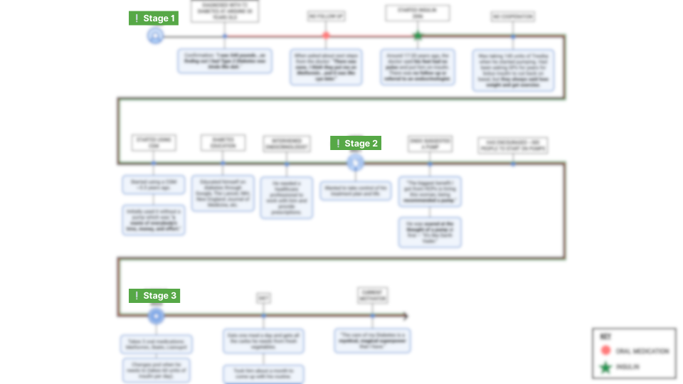From our interviews, we identified three key stages in the patient's journey. We crafted our research insights into a clear narrative by aligning them with these stages